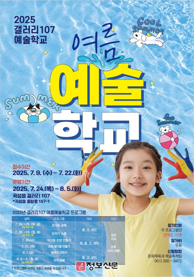 ![]() 곡성군 갤러리 107, 여름 예술학교 프로그램 참가자 모집 |