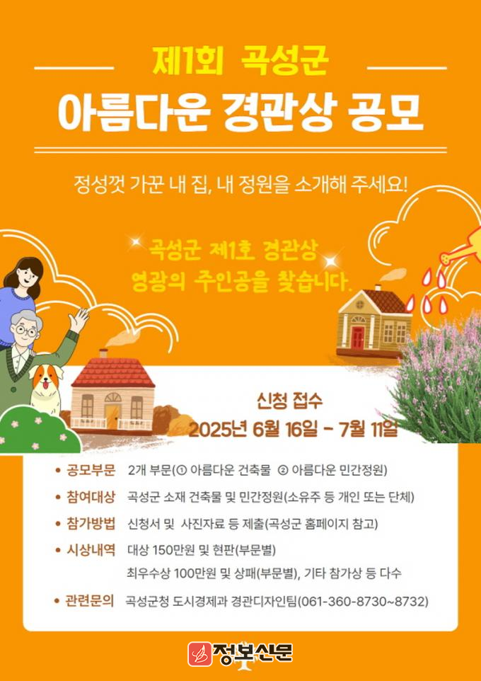 ![]() 곡성군, 제1회 아름다운 경관상 공모 마감 임박 |