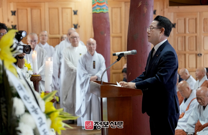 김영록 지사는 조사(弔辭)를 통해 “만당 종사의 삶은 꺼지지 않는 등불 같은 정진이자, 중생을 위한 보살행이었고, 불갑사를 전국적 성지로 일구고, 한국불교가 대중과 세계로 나아가는 길을 닦으셨다”며 “아직 이루지 못한 구층목탑 건립의 원력을 가슴에 새기고, 전남도가 종사님이 일군 불교문화 성지를 더욱 장엄하게 가꾸겠다”고 말했다.