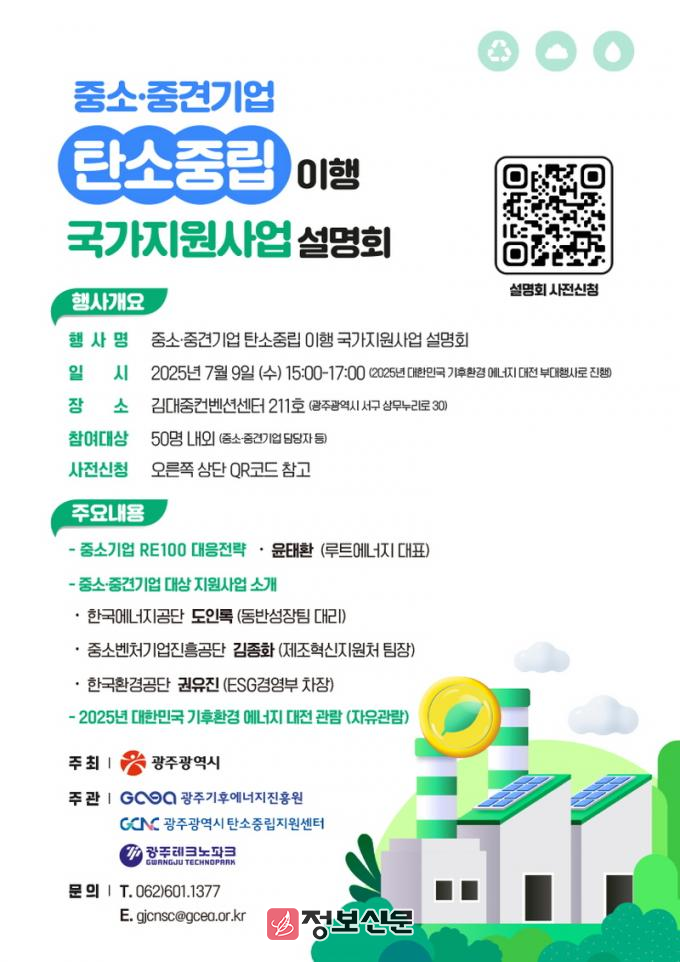 ![]() 광주광역시, 중소.중견기업 탄소중립 이행 국가지원사업 설명회 개최 |