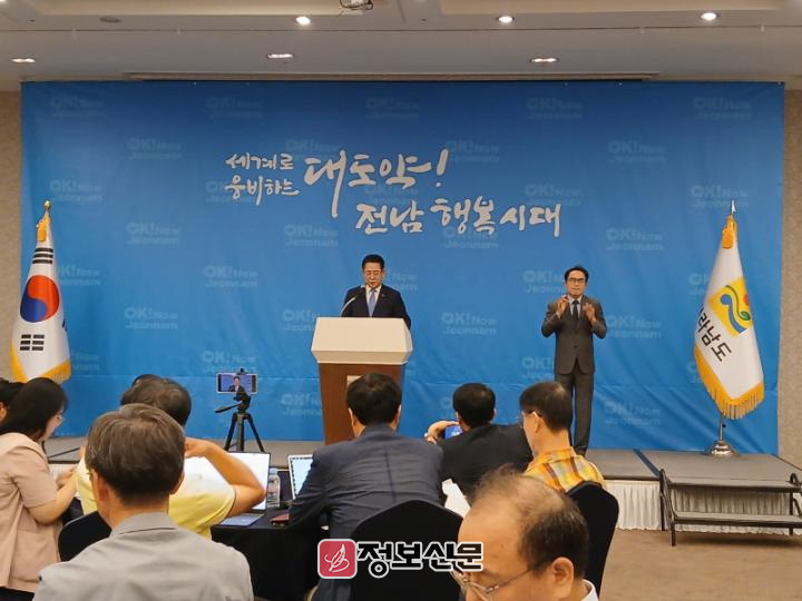 이날 기자간담회에서 김영록 지사는 석유화학·철강산업 위기 대응과 골목상권 살리기 등 그동안의 성과를 설명하고, 미래 100년 동부권 부흥을 통한 ‘OK, 지금은 전남시대’를 열겠다는 포부를 밝혔다.