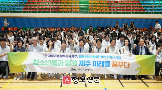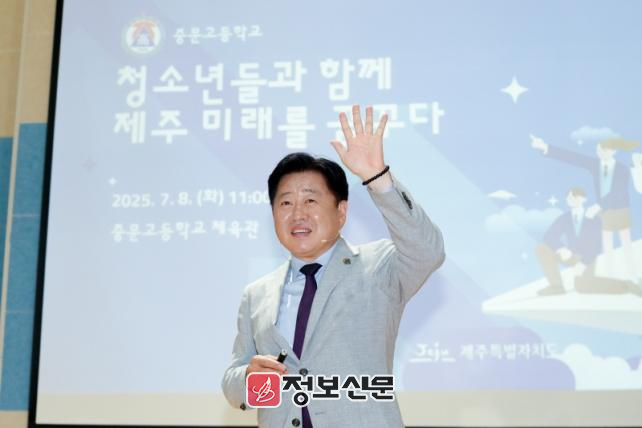 오영훈 지사는 강연을 마무리하며 “제주의 변화와 성장, 미래는 결국 여러분과 같은 청소년 세대가 만들어가는 것”이라며 “도정은 여러분이 제주에서 배우고, 꿈꾸고, 도전하며 살아갈 수 있는 환경을 만드는 데 언제나 함께하겠다”고 말했다.