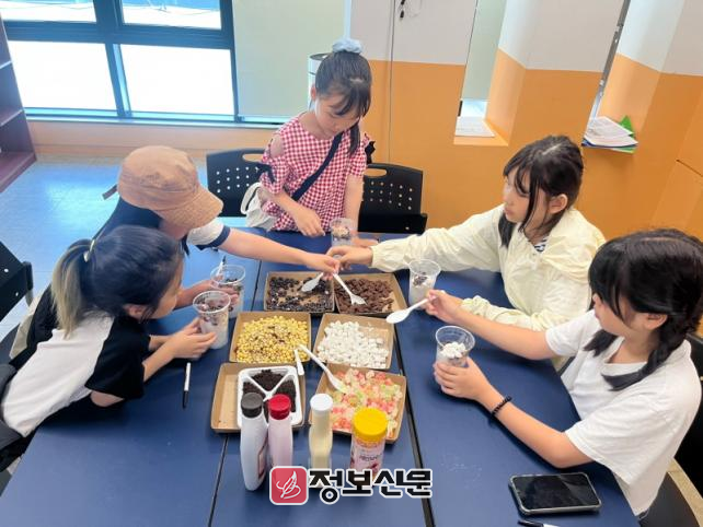 얼음, 팥, 과일, 아이스크림, 젤리, 크래커, 빙수 떡, 딸기, 초코 시럽 등 다양한 재료를 활용해 청소년들이 창의적으로 자신만의 빙수를 만들며 요리의 즐거움과 함께 더위를 날리는 시간을 가졌다.