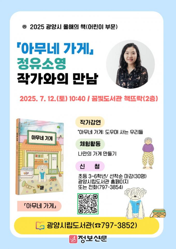 ![]() 광양시, 『아무네 가게』 정유소영 작가 초청 강연 개최 |
