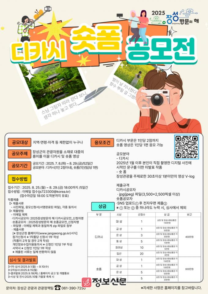 ![]() 장성군, 2025 장성 방문의 해 디카시‧숏폼 공모전 개최 |