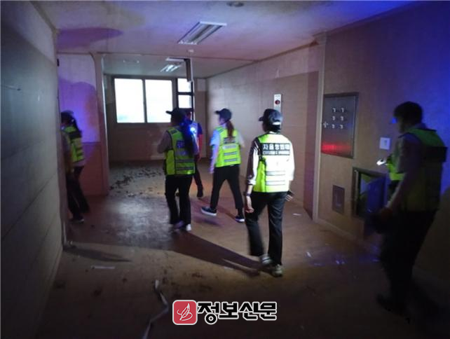 특히 관내 대표적인 범죄취약지로 폐가 체험과 청소년 비행, 노숙인 등 지역 내 골머리를 앓고 있는 대형 폐병원을 중동지구대장과 순찰5팀이 함께 수색하였다. 이 날 활동에서는 수술용 메스, 주사기 등 의료용품, 회칼, 식도 등 위해 물품 28점을 수거하여 시청에 인계해 폐기(7.8일자)하는 등 사고 위험을 방지하는데 기여하였다.