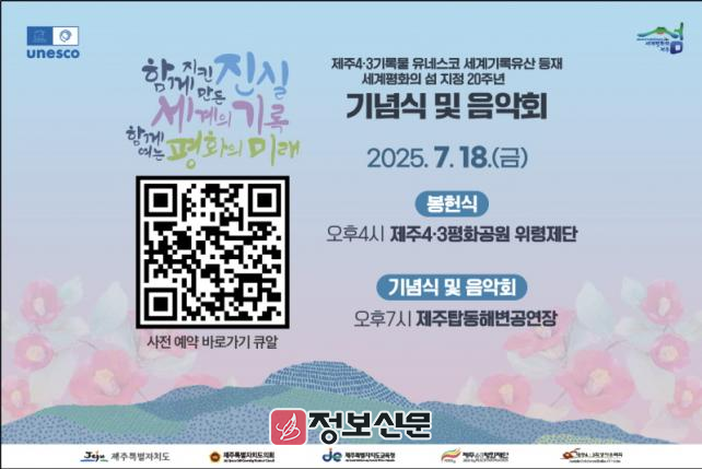 오영훈 지사는 “제주4·3은 더는 침묵의 역사가 아니라 인류가 함께 성찰하고 공감해야 할 세계의 역사로 자리매김했다”며 “이번 행사를 통해 유네스코 등재의 역사적 의미를 대내외에 알리고, 4·3정신을 미래세대에 계승하기 위한 상징적 출발점이 될 것으로 기대한다”고 말했다.