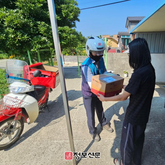 이번 7월 첫 우편배달은 폭염이 기승을 부리는 시기인 만큼 우체국 집배원 및 읍면 복지담당공무원이 함께 사회적 고립 가구를 방문해 대상자의 건강관리를 직접 확인하며 대상자에 맞는 맞춤형 물품(생필품)을 배달했다.