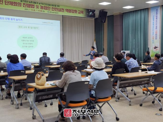 교육은 ▲효율적인 단체 운영을 위한 회의 진행법 ▲여름철 온열질환 예방을 위한 농작업 안전교육, 두 가지 주제로 나눠 진행된다.