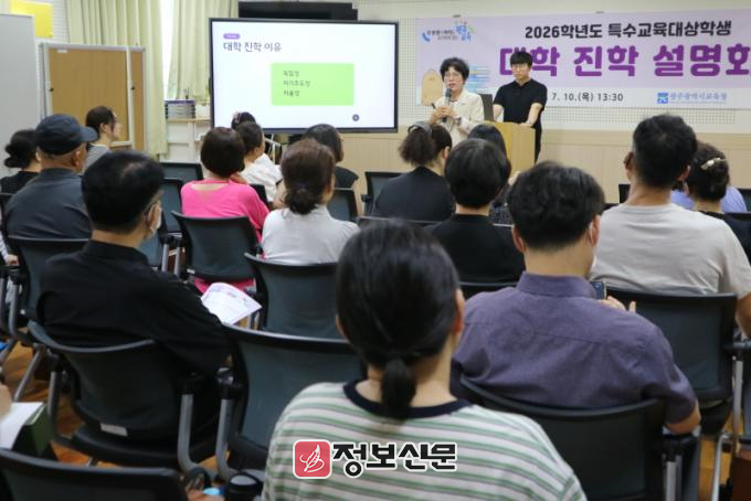 ![]() 광주시교육청이 10일 본청 특수교육지원센터에서 개최한 특수교육대상학생 대학 진학 설명회에서 학생·학부모들이 입학 전형 설명, 1:1 상담부스 등에 참여했다. |