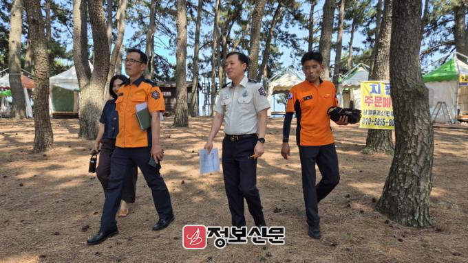 이날 현장점검에서는 해수욕장을 순찰하며 인명구조함, 구명부환 등의 비치 및 관리 상태를 세밀히 확인하고, 수난사고 발생 시 초동 대응 체계를 점검했다.