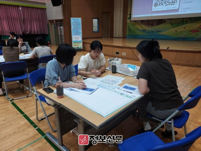이날 교사들은 학년별 성취기준과 학년교육과정에서 공동교육과정으로 재구성할 차시를 찾고 활동 방법, 모이는 장소, 실행 시 예상되는 문제점을 추출하여 그 자리에서 공동으로 해결하는 열띤 논의의 시간을 가졌다.