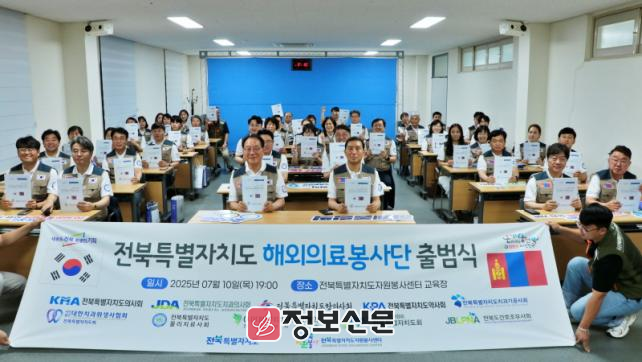 전북특별자치도 의료봉사단은 질병으로 고통받는 지구촌 시민들의 인도적 지원을 위해 2019년 캄보디아를 시작으로 전북특별자치도 4대 의약단체와 함께 긴밀하게 협력하여 추진하고 있으며 2024년부터는 몽골에서 의료봉사를 추진하고 있다.