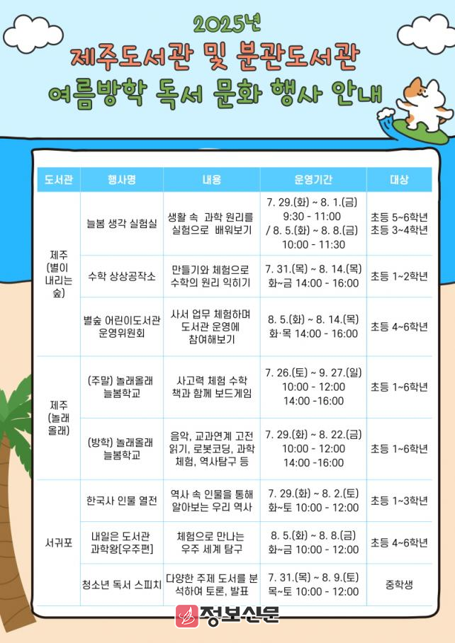 ![]() 제주도서관, 2025년 여름방학 독서․문화 프로그램 안내 |