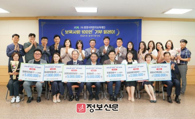 이날 행사는 광양시 영유아의 건강하고 행복한 성장을 바라는 마음으로 마련됐으며, 정인화 광양시장과 이광용 재단 이사장, 기탁자 등 20여 명이 참석해 나눔의 의미를 더했다. 이번 기부 릴레이에는 9곳의 기업·단체·개인 등이 참여해 총 2,800만 원의 후원금을 전달했다.