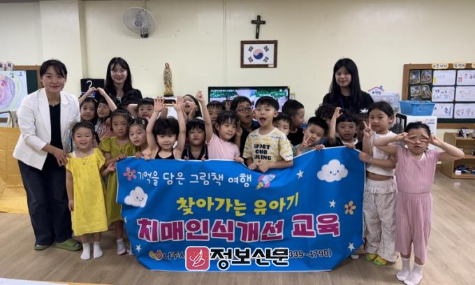 ![]() 나주시치매안심센터는 지난 11일 관내 까리따스 성모유치원을 방문해 ‘찾아가는 유아기 치매인식개선 교육’을 진행했다. (사진제공-나주시)