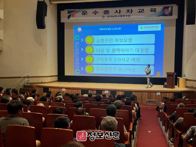 이번 보수교육은 전라남도 교통연수원 주관으로 진행됐으며, 친절 서비스와 인성 교육을 통해 사람 중심의 교통문화를 정착시키고, 교통법규 준수와 질서 확립, 사고 예방 교육 강화를 통해 교통안전의식을 높이는 데 목적을 뒀다