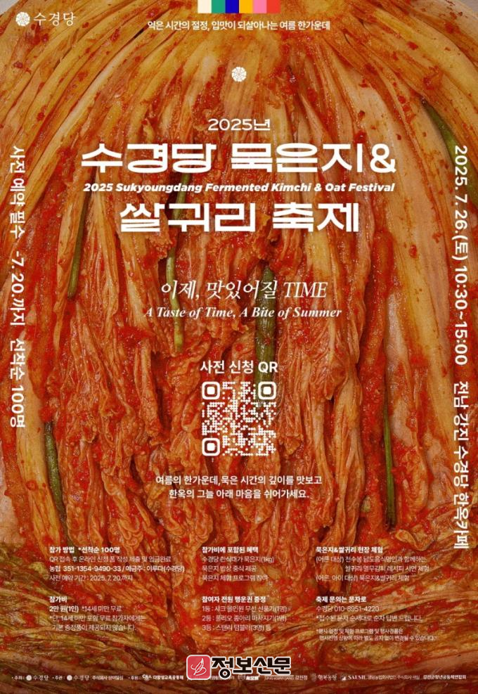 행사는 단순한 먹거리 축제를 넘어, 강진의 대표 특산물인 묵은지와 쌀귀리를 현대적인 감각으로 재해석해 체험 중심의 식문화 콘텐츠로 선보이는 자리다. 또한 ‘강진 반값여행’ 정책과 연계해 지역 관광 활성화를 도모하고, 농촌 공동체의 상생 모델을 보여주는 취지로 기획됐다.