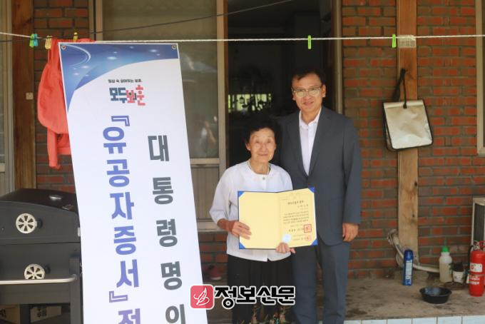 증서를 전달받은 배우자는 “남편은 평생 나라를 위해 싸운 것을 자랑스럽게 여겼는데 이렇게 국가가 잊지 않고 찾아와 주셔서 정말 감사하다.”고 소감을 전했다.