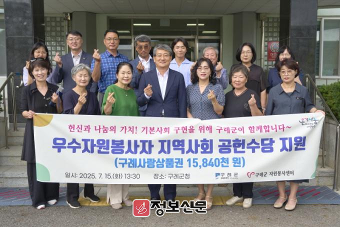 이번 지원은 자원봉사자의 노고를 인정하고 지역 경제에 활력을 불어넣기 위한 취지로 마련됐으며, 공헌수당은 12만 원 상당의 구례사랑상품권으로 지급된다.