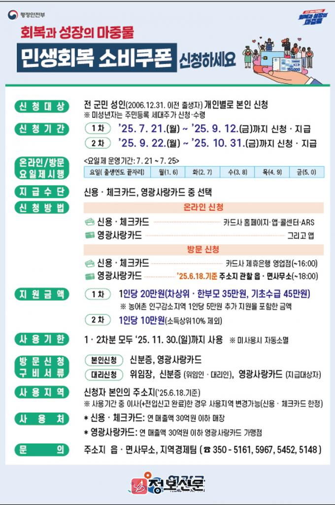 ![]() 영광군, 민생회복 소비쿠폰 7월 21일부터 신청 시작 |