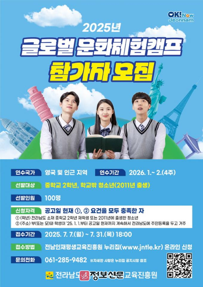 이번 캠프는 2026년 1~2월 중 4주간 영국 및 인근 지역에서 진행될 예정이며, 현지 학교 정규 수업 참여, 방과후 수업, 홈스테이, 주말 문화 체험 등 다양한 프로그램으로 청소년들의 글로벌 역량을 키울 수 있는 기회를 제공한다.
