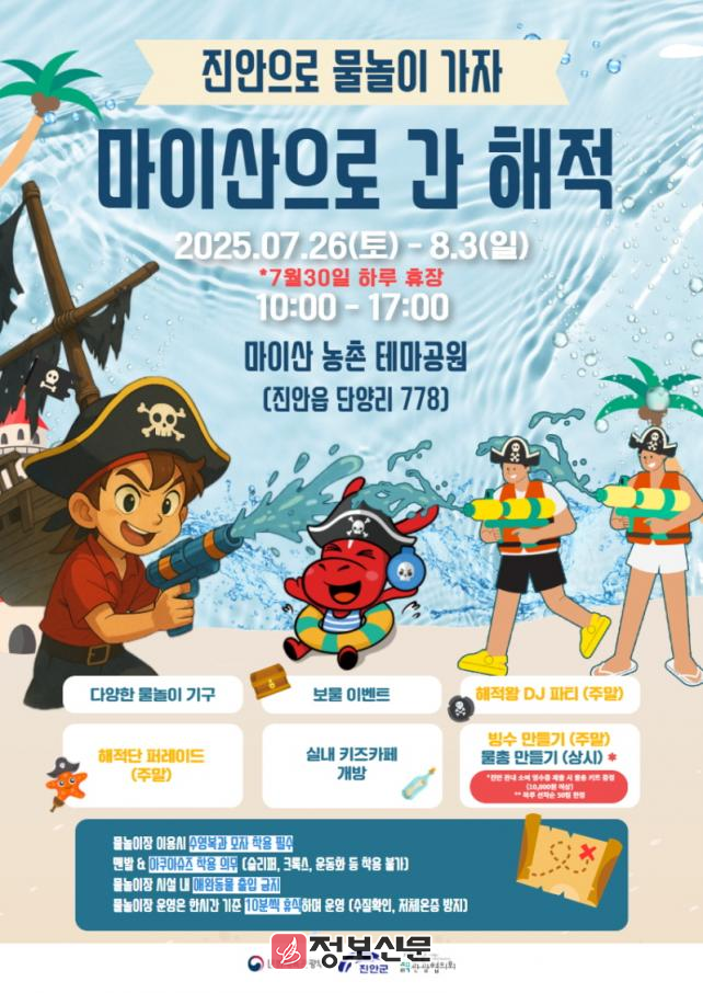 정난경 진안군 관광과장은 “『마이산으로 간 해적』은 단순한 물놀이를 넘어 가족이 함께 즐기고 추억을 쌓을 수 있는 여름 축제”라며, “진안의 청정 자연 속에서 시원하고 특별한 여름을 보내시길 바란다”고 전했다.