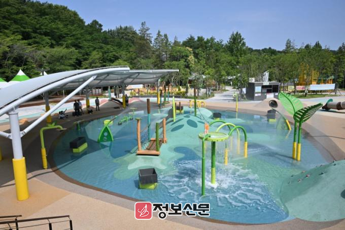 물놀이장은 고무탄성 재질의 풀장(358㎡)과 도롱뇽조합놀이대, 물놀이시소, 해바라기샤워 등 다양한 놀이시설을 갖추고 있다. 특히 물놀이장 수심이 20cm로 얕고 안전해 어린 자녀를 동반한 가족 단위 시민들에게 인기를 끌 것으로 기대된다.