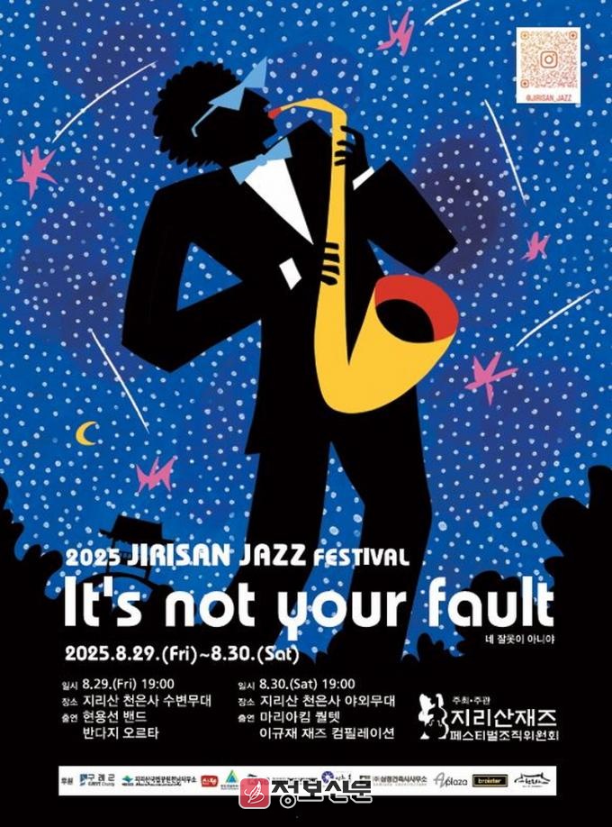 2025 지리산 재즈 페스티벌 슬로건인 ‘It’s not your fault(네 잘못이 아니야)’는 영화 ‘굿월헌팅(Good Will Hunting, 1998년)의 명대사로 천은사 주지 대진스님은 “요즘 시대상황과 맞물려 우리들의 삶 속에서 아픔과 슬픔이 내게 다가올 때 자기 자신을 자책하는 이들이 많다”며 그런 대중들에게 “It’s not your fault” 따뜻한 말한마디를 전하고 싶다고 하셨다.