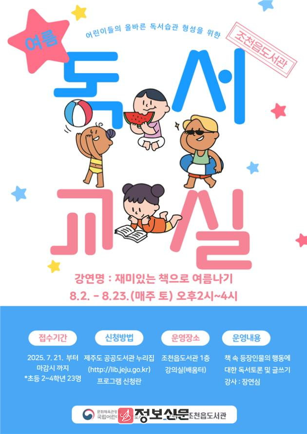 ![]() 조천읍도서관, 여름 독서교실 참여자 모집 |
