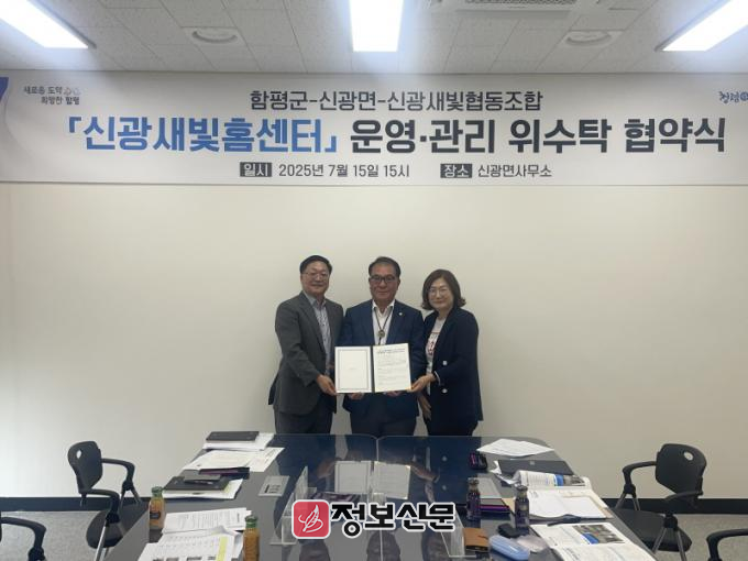 함평군은 17일 “신광면 새빛행복홈센터 운영·관리 위수탁 협약식이 지난 15일 신광면사무소 회의실에서 성공적으로 마무리됐다”고 밝혔다.