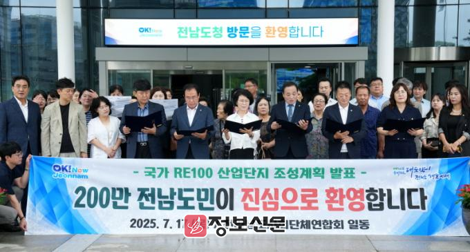 ![]() 전라남도사회단체연합회, ‘RE100 산업단지 조성지원 특별법 제정추진 환영성명서 발표 |