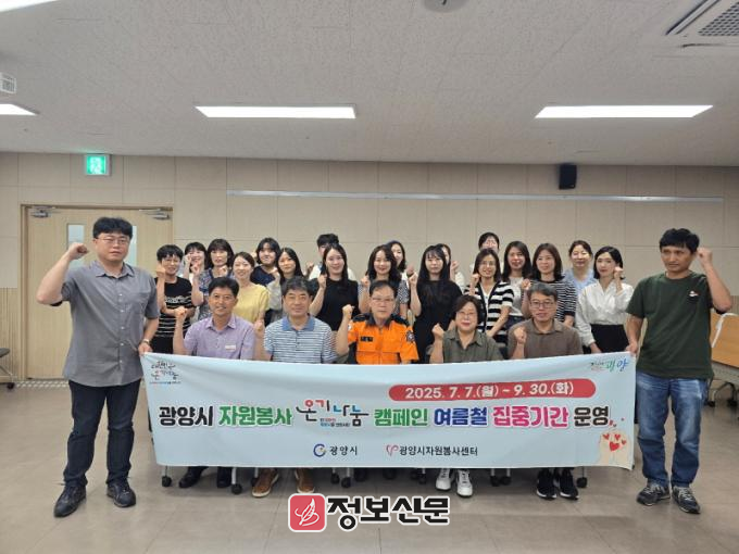 이번 간담회에는 광양시 자원봉사팀, 광양소방서 예방홍보팀, 광양시 자원봉사센터 운영위원회, 읍면동 맞춤형복지팀 등 담당자 27명이 참석해 ‘우리동네 복지기동대’ 활동을 기반으로 한 여름철 ‘자원봉사 온기나눔 캠페인’의 전 시민 확산을 위한 추진사항을 공유하고, 개선사항을 논의했다.