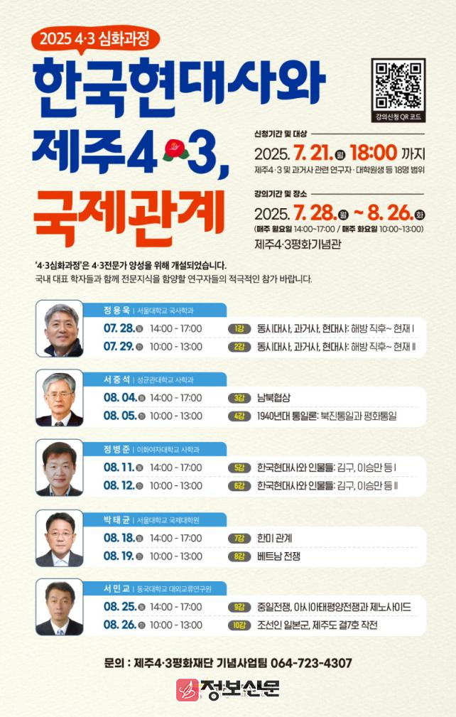 ![]() 제주4.3평화재단, 2025 4·3 심화과정 개설 |