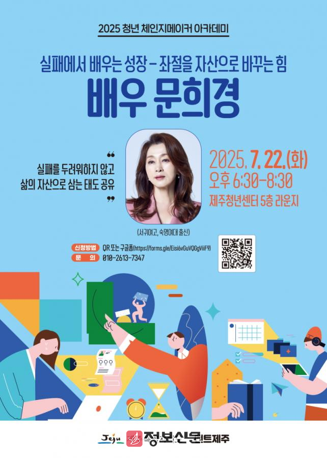문희경 배우는 이번 강연을 통해 실패를 두려워하지 않고, 삶의 자산으로 삼는 태도에 대해 제주 청년들과 소통하며 진솔한 경험을 공유할 계획이다.