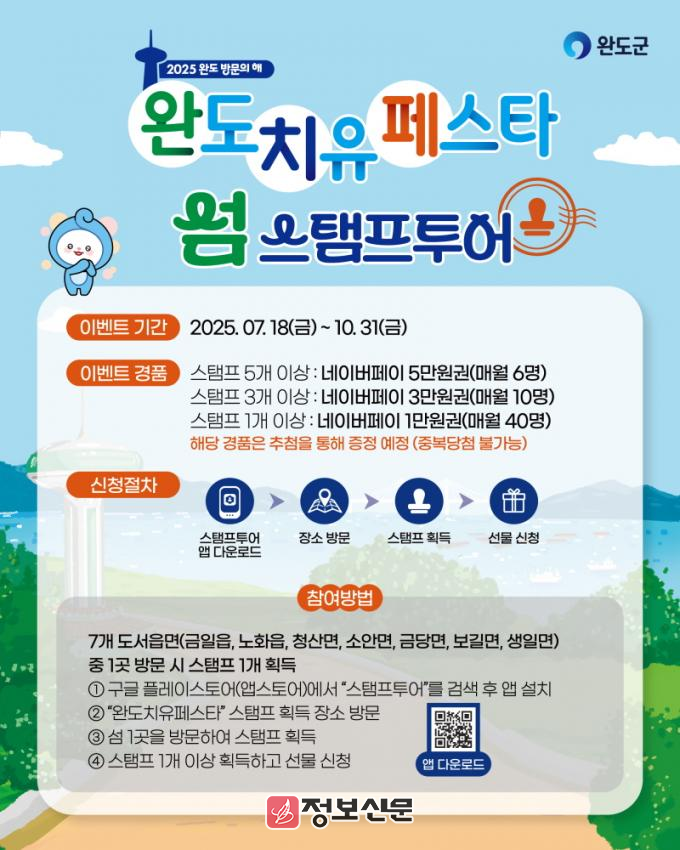 섬 스탬프 투어에 대한 자세한 내용은 완도 치유 페스타 누리집 게시판을 통해 확인하면 된다.