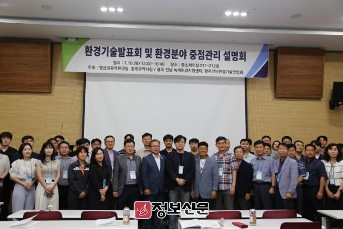 전남녹색환경지원센터가 지난 10일 광주 김대중컨벤션센터에서 환경기술발표 및 환경분야 중점 관리 설명회‘를 개최하고 기념촬영을 하고 있다. 전남대 제공