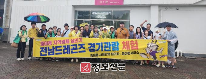 ![]() 광양시 중마동, 지역경제 살리기 첫걸음 사회단체와 전남드래곤즈 함께 응원 |
