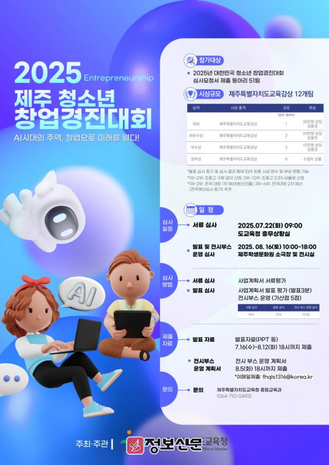 ![]() 제주특별자치도교육, 2025년 제주청소년 창업경진대회 개최 |