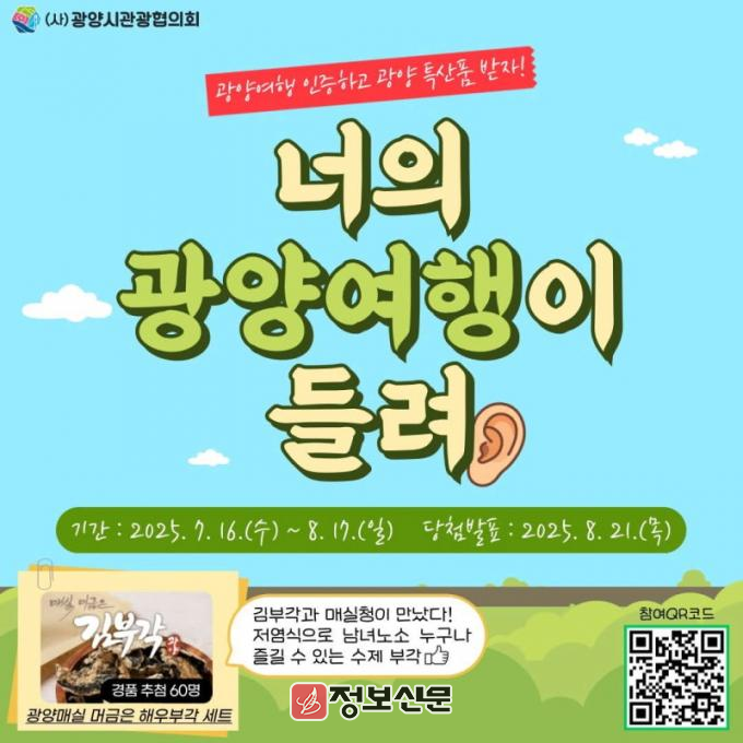 당첨자는 8월 21일 (사)광양시관광협의회 홈페이지와 공식 인스타그램을 통해 발표되며, 경품은 발표일로부터 7일 이내에 개별 발송될 예정이다.