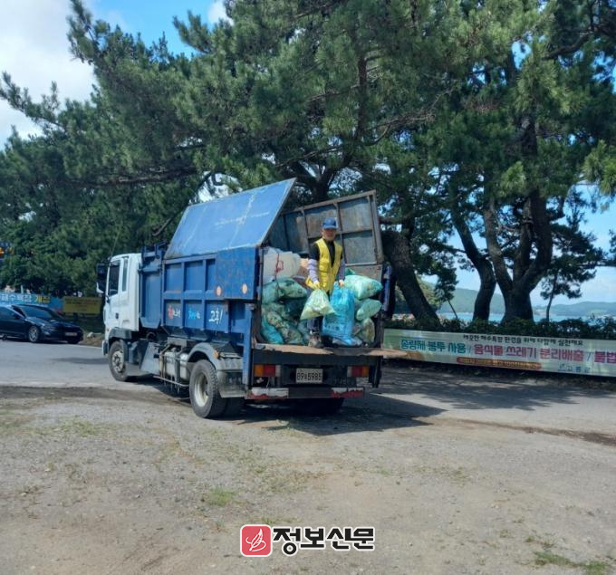 군은 오는 8월 말까지 2개 반 6명의 수거전담반을 구성해 매일 쓰레기를 집중 수거한다.