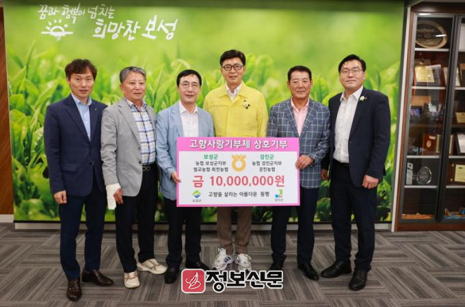 이번 기부는 보성군 농협(농협 보성군지부, 벌교농협, 회천농협)과 강진군 농협(농협 강진군지부, 강진농협)이 참여해, 고향사랑기부제의 도입 3년 차를 맞아 서로의 지역 경제와 농업을 응원하기 위해 진행했다.