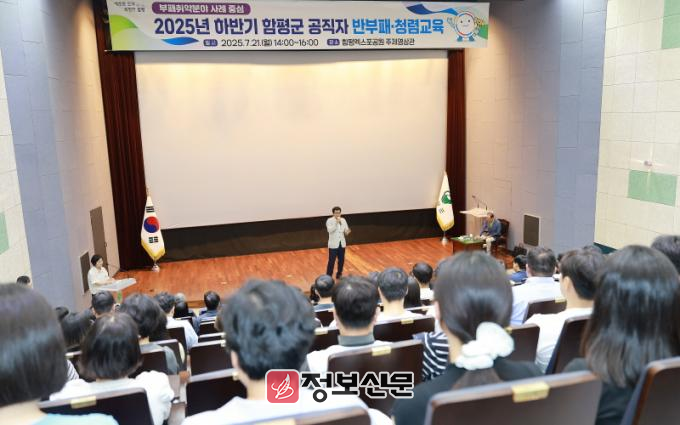 함평군은 22일 “하반기 반부패‧청렴교육이 지난 21일 엑스포공원 주제영상관에서 하반기 승진자, 신규자, 부패취약분야 담당자를 포함한 공직자 200여 명을 대상으로 실시됐다“고 밝혔다.