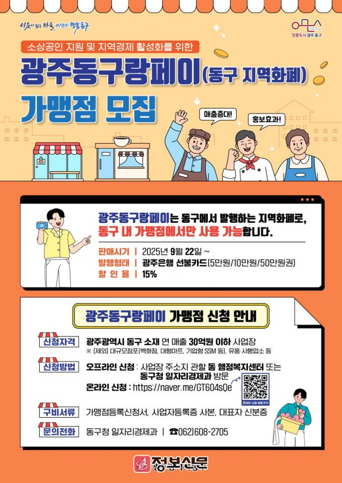 ![]() 광주시 동구, ‘광주동구랑페이’ 가맹점 모집 |