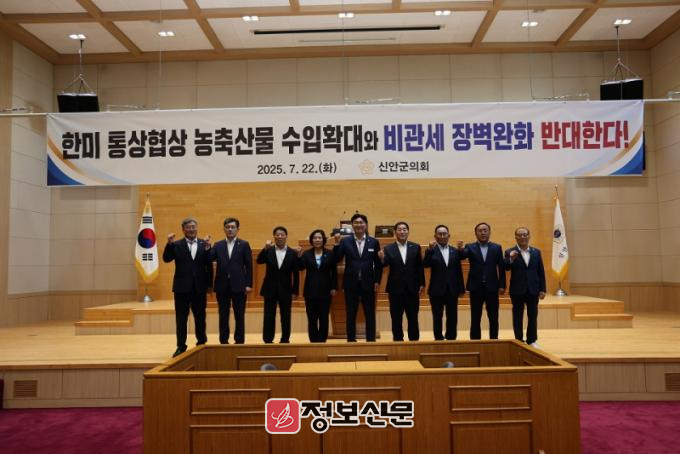 ![]() 신안군의회, 한미 통상협상 농축산물 수입 확대 ‘전면 반대’ 성명 발표 |