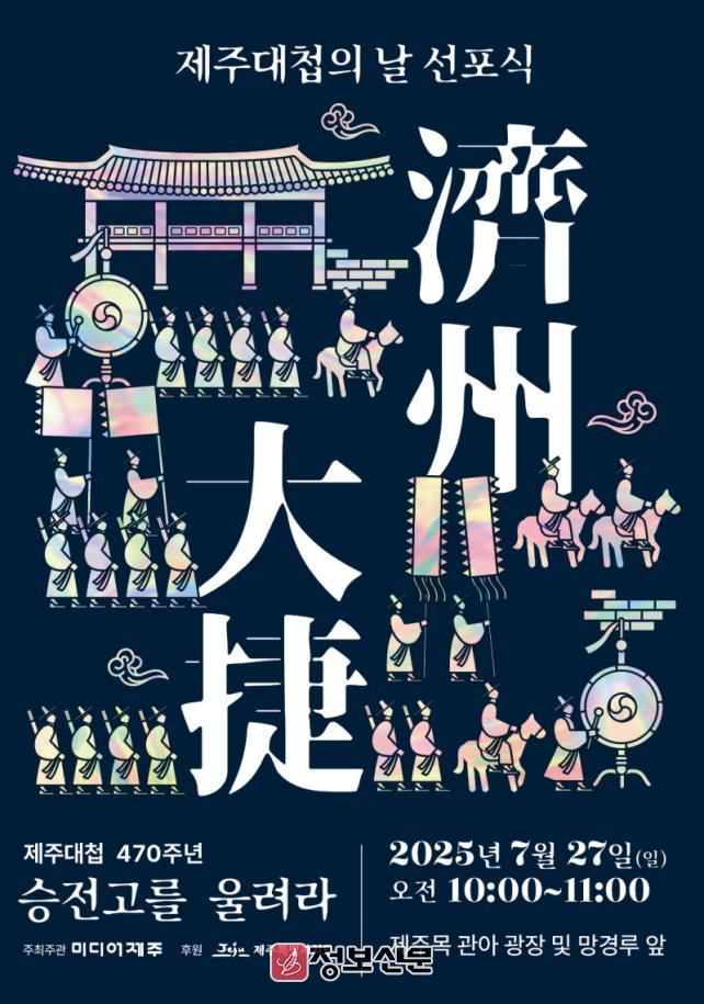 <미디어제주>가 주최 및 주관하고 제주특별자치도가 후원하는 제주대첩의 날 선포식 '승전고를 울려라'가 오는 27일 오전 10시 제주목 관아 광장 및 망경루 앞에서 마련된다.