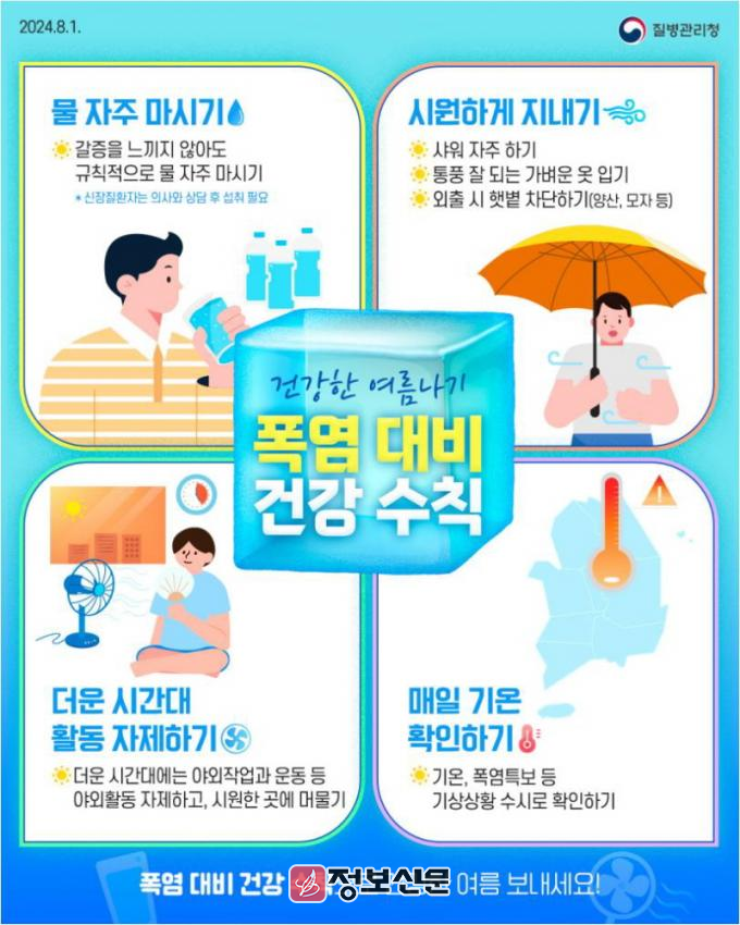 온열질환 예방을 위해서는 ▲물 자주 마시기 ▲낮 12시~오후 5시 사이 야외활동 피하기 ▲외출 시 햇빛 차단하기 등 기본 수칙 지키기가 중요하다. 특히 노인, 어린이, 만성질환자 등 고위험군은 무더위 시간대 외출을 삼가고, 실내에서 충분한 수분을 섭취하며 상태를 수시로 확인하는 등 각별한 주의가 필요하다.