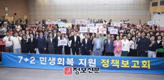 광주광역시(시장 강기정)는 23일 김대중컨벤션센터에서 ‘7+2 민생회복 지원 정책보고회’를 열고, 골목상권 중심의 지역경제 육성을 위한 지원방안을 공개했다. 이번 정책보고회는 당초 지난 18일 예정됐으나 집중호우로 인해 연기돼 이날 개최했다.