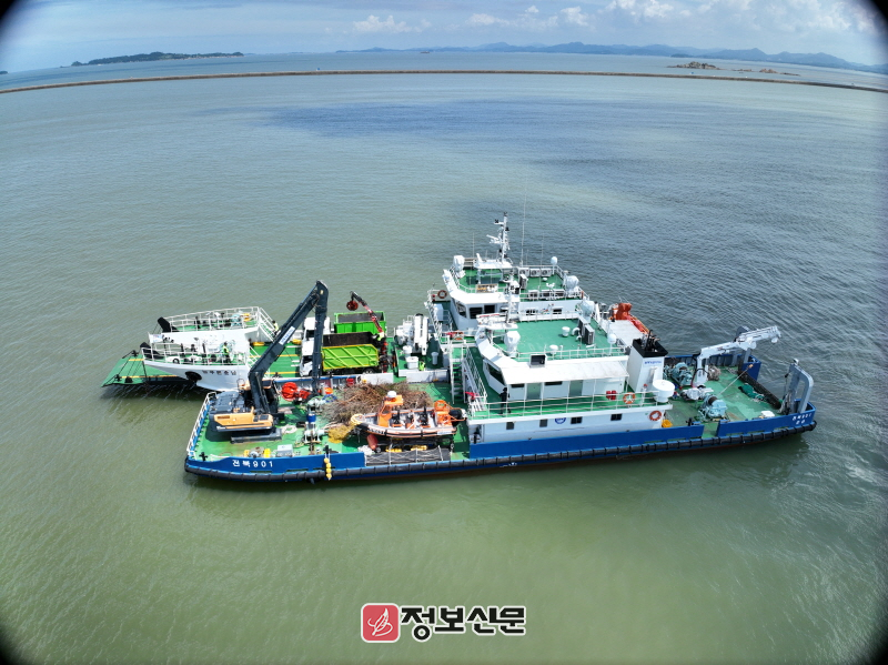 ‘전북901호’는 굴삭기와 해저경운장비를 장착한 하이브리드 정화선이며, ‘늘푸른충남호’는 크레인과 쓰레기 운반 트럭을 갖춘 운반 전용선으로, 양 도의 장비를 효율적으로 분담해 신속하고 안전한 해양폐기물 처리를 가능하게 했다.