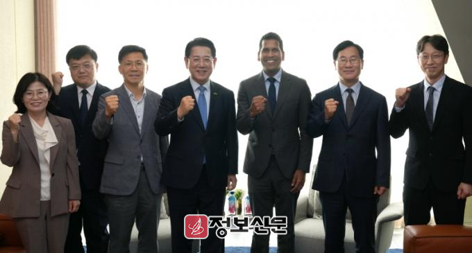 ![]() 김영록 전라남도지사가 23일 서울 여의도에서 비노드 파트와리 린데 아태지역 사장과 면담을 마친 뒤 기념촬영을 하고 있다.